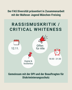 mehrDer Fachausschuss Diversität lädt in Zusammenarbeit mit der Malteser Jugend Erzdiözese München Freising herzlich zum Onlineworkshop ein.